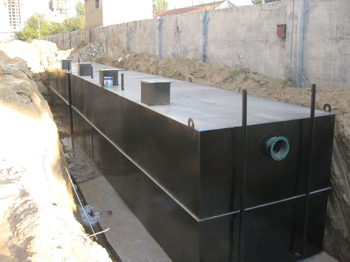 地埋式一體化污水處理設備由二級池子組成,一級為鋼筋混凝土結構,埋深較大,另一組為鋼結構,埋深較淺。鋼結構池采用國內領先的互穿網絡防腐涂料進行防腐。設備一般涂刷該涂料之后,防腐壽命可達15年以上。